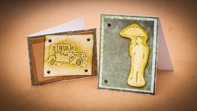 Roheline on värv, mida kasutan oma kaardiprojektides üsna vähe. Nüüd jäi näppu aga tumeroheline scrapbookingu paber ja tulemus sai lihtne kuid väga praktiline. Toredad väikesed kaardikesed, hea kingipaki vahele pista, ruttu said valmis - nüüd jääb üle vaid sünnipäevakutset oodata, sest isegi mina ei tea hetkel kelle kingipaki vahele need kaardid võivad sattuda. :))